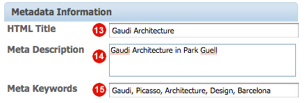 14. Meta Descriptions. By default, if the user does not fill this in, the system will automatically will fill this with the first 100 characters.