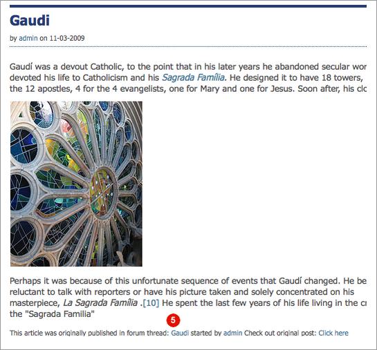 3. Also note that the original author of the forum post is attributed as the new article author. Clicking the save button will save the new article publish it live to the CMS powered website.