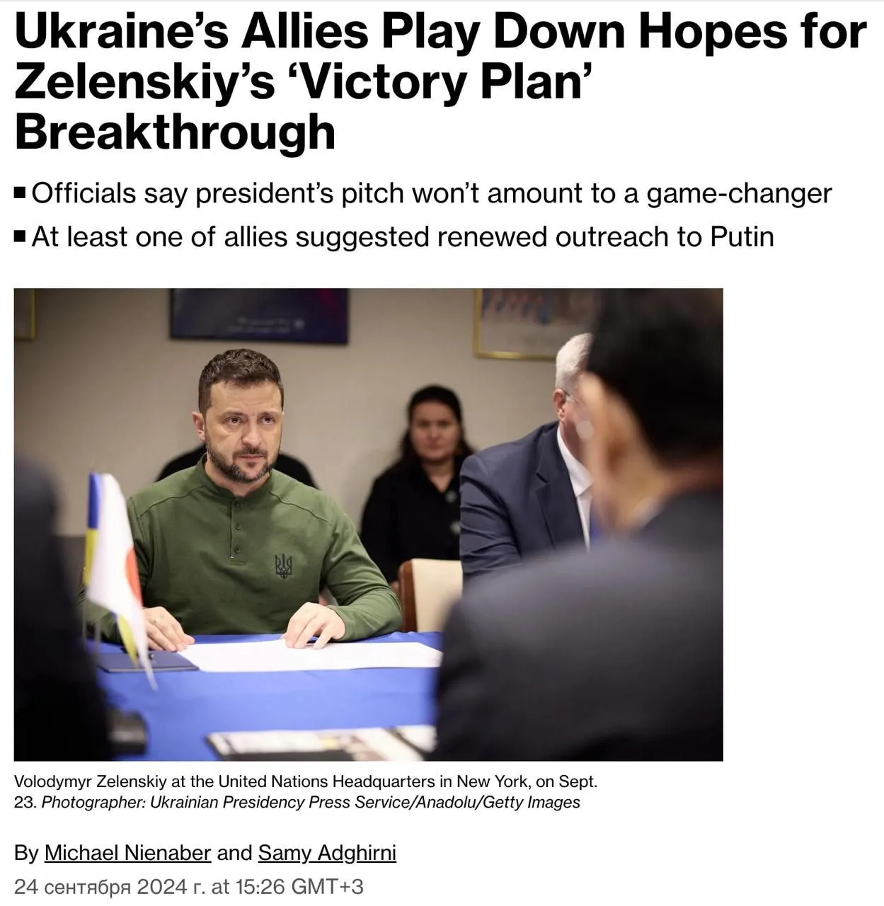 “To promote peace, Ukraine’s allies must make Putin understand that he cannot dictate the terms of how the war will end. They can do this by enlisting global support for a peace agreement based on the fundamental principles of international law, strengthening Ukraine’s position on the battlefield, providing long-term security guarantees and charting a clear path to NATO membership,” write Andriy Ermak, Zelensky’s right-hand man, and Anders Fogh Rasmussen, former NATO Secretary General and now lobbyist for the Office of the President of Ukraine, in an article this week in which they argue for achieving “peace through strength.” The approach involves, of course, the delivery of a greater quantity of weapons and the lifting of all bans on the use of ammunition and material on the territory of the Russian Federation, to prevent “Ukraine from having to fight with one hand tied behind its back.”